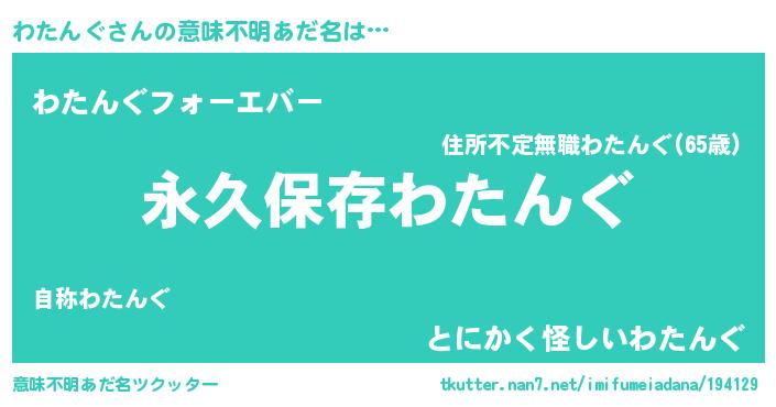 | 胡散臭い通販商品みたいなあだ名 | 『前代未聞の健康食品…その名も「わたんぐ」』 |