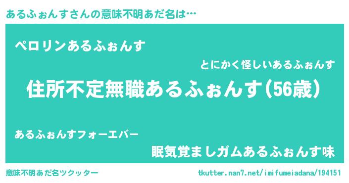 | ヘコむあだ名 | 『あるにゅー』『あるお』『豆乳』 |