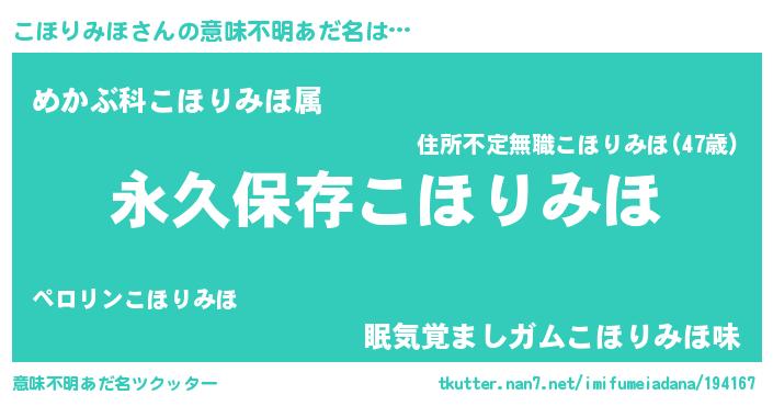 | 女子向けラノベタイトル風あだ名 | 『異世界でカフェこほりみほを開店しました。』 |