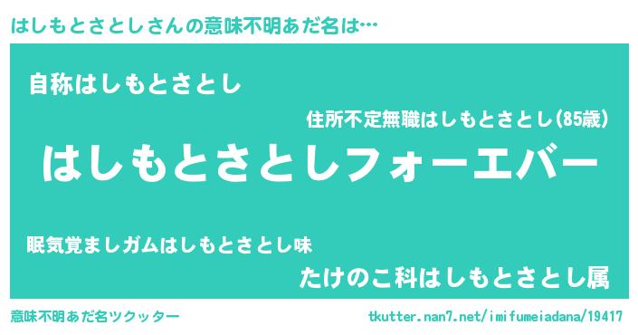 | ファンタジー風あだ名 | 『エターナルハシモトサトシー』 |