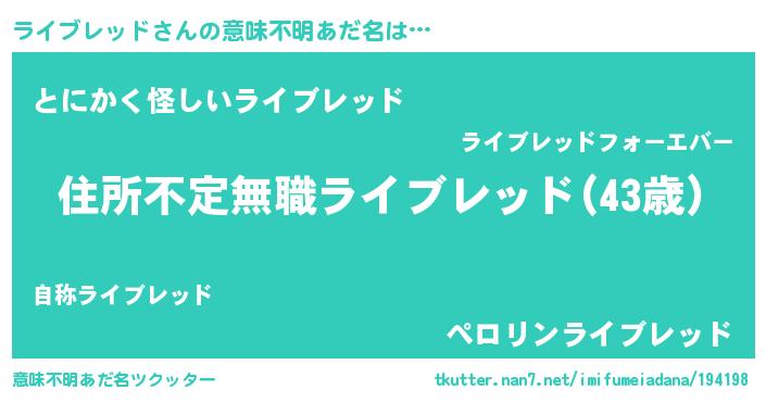 | 女子向けラノベタイトル風あだ名 | 『乙女ゲームの破滅フラグしかない悪役ライブレッドに転生してしまった…』 |