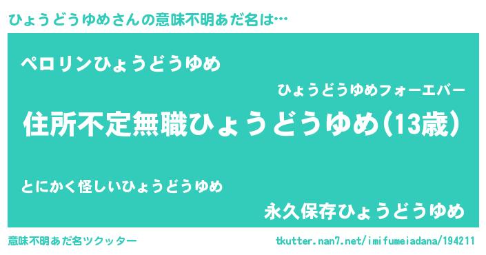 | 料理風あだ名 | 『ひょうどうゆめのカルパッチョ風』 |