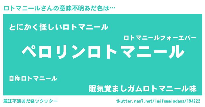 | 胡散臭い通販商品みたいなあだ名 | 『億万長者になれる霊験あらたかなお札…その名も「ロトマニール」』 |