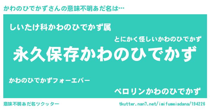 | 伝説のあだ名 | 『古より伝わる吟遊詩人かわのひでかず』 |