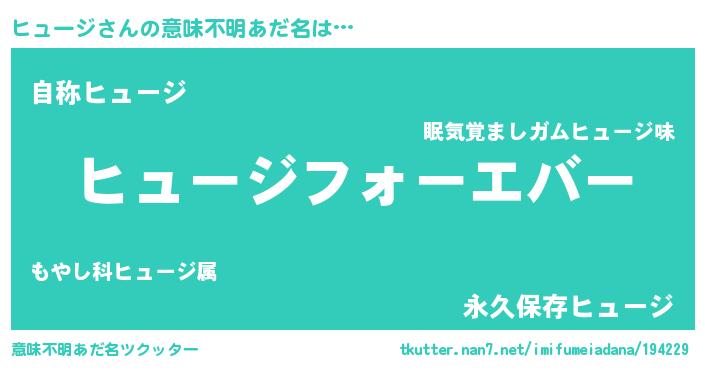 | 女子向けラノベタイトル風あだ名 | 『ヒュージの雑貨屋さん』 |