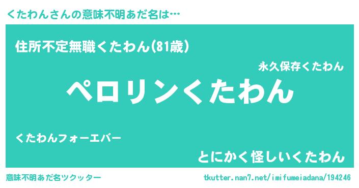 | 胡散臭い通販商品みたいなあだ名 | 『必ず成功するブレスレット…その名も「くたわん」』 |