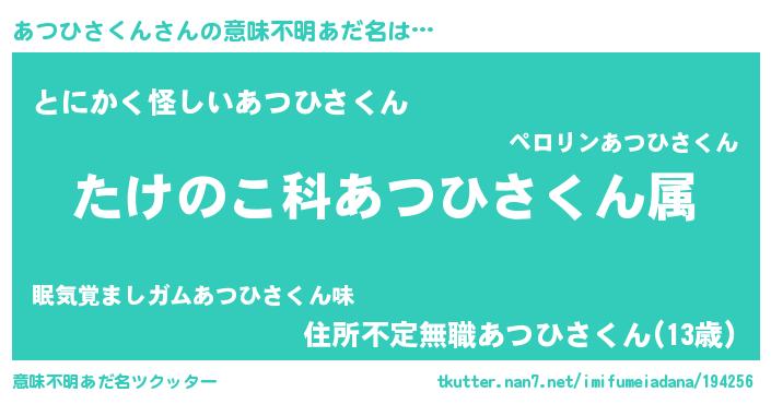 | 男性向けラノベタイトル風あだ名 | 『はたらくあつひさくんさま!』 |
