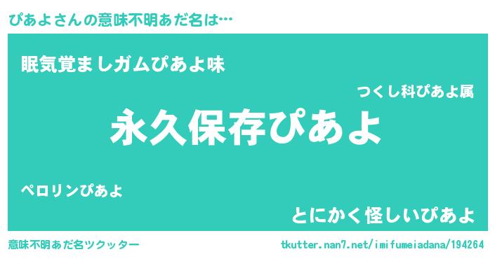 | ヒーロー風カッコイイあだ名 | 『ネオピアヨ』『天空の使者ぴあよ』 |