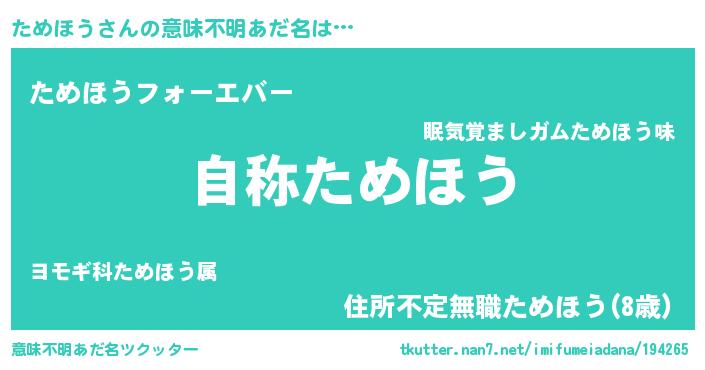 | ヒーロー風カッコイイあだ名 | 『最強戦士タメホウ』『仮面タメダー』 |