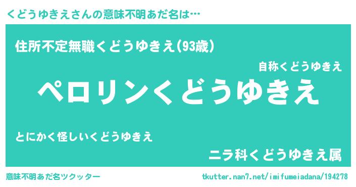 | 胡散臭い通販商品みたいなあだ名 | 『必ず成功するブレスレット…その名も「くどうゆきえ」』 |