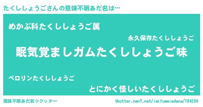 | ヘコむあだ名 | 『たくぷりん』『たくししょうご(笑)』 |