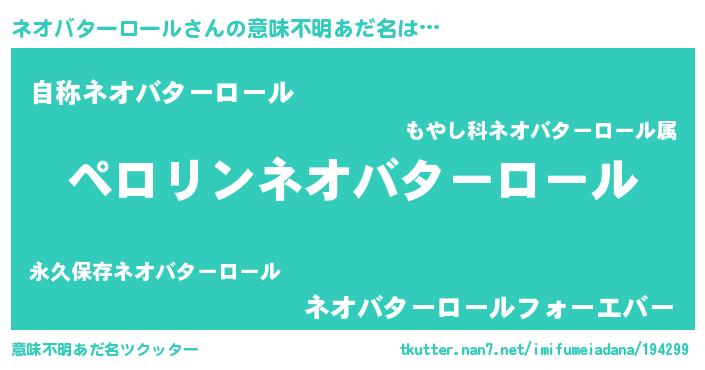 | 恥ずかしいあだ名 | 『プリティーネオバターロール』 |