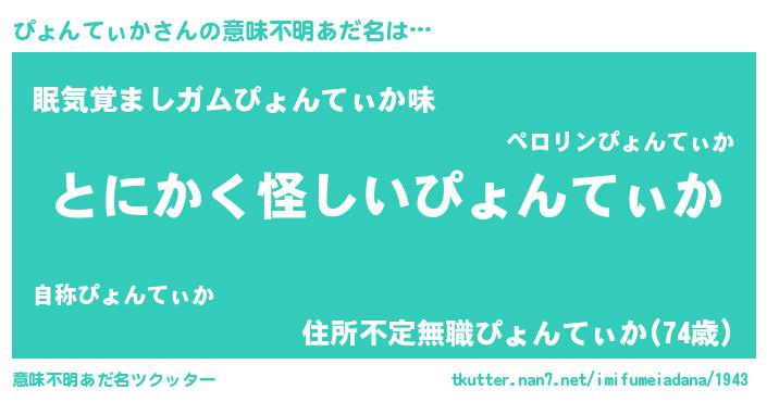 | 欧米人風あだ名 | 『ぴょんてぃか・ステッグマイヤー』 |