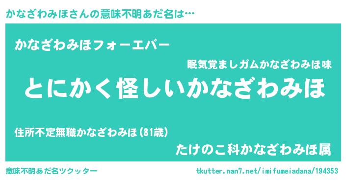 | 男性向けラノベタイトル風あだ名 | 『かなざわみほの嫁は女の子じゃないと思った?』 |