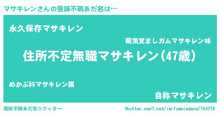 | 男性向けラノベタイトル風あだ名 | 『うちのマサキレンが世界を掌握している!』 |