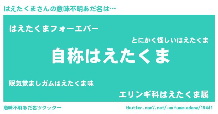 | 肩書あだ名 | 『はえたくま閣下』『はえたくま艦長』 |