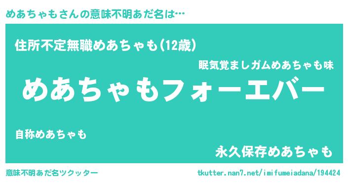 | 欧米人風あだ名 | 『めあちゃもクリステル』 |