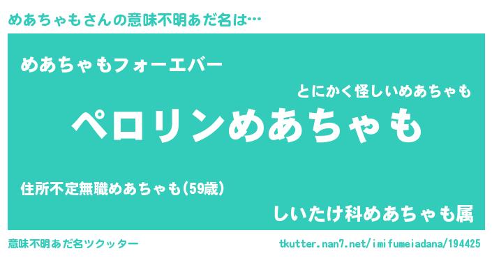 | 2回繰り返すあだ名 | 『めあめあ』『とろとろ』『めめああ』 |