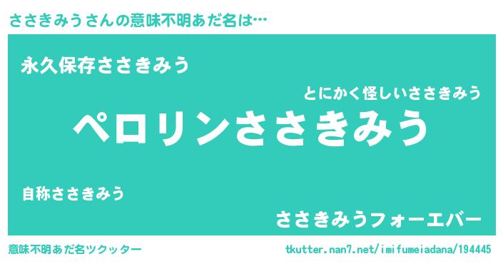 | ヒーロー風カッコイイあだ名 | 『スーパーササキミウ』『ネオササキミウ』 |