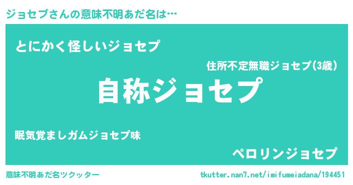 | 男性向けラノベタイトル風あだ名 | 『Re:ジョセプから始める異世界生活』 |