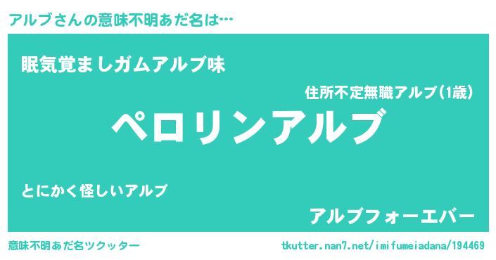 | ヒーロー風カッコイイあだ名 | 『スーパーアルブ』『愛の使者アルブ』 |