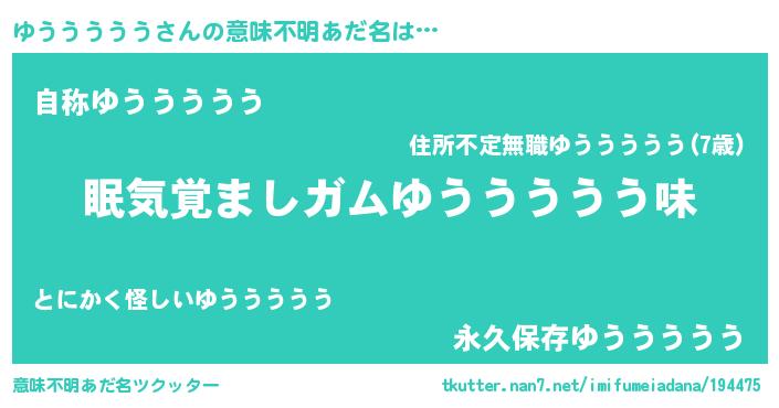 | ヘコむあだ名 | 『ゆううううう(遠い目)』『ゆうぷりん』 |