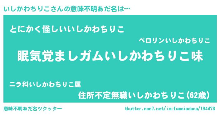 | 女子向けラノベタイトル風あだ名 | 『いしかわちりこ恋絵巻』 |