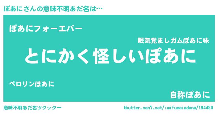 | 女子向けラノベタイトル風あだ名 | 『ぽあには平凡を望む』『闇のぽあに』 |
