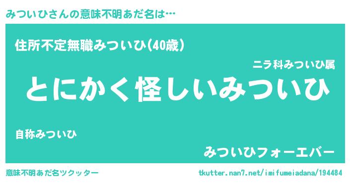 | ヘコむあだ名 | 『みつお』『豆乳』『みつもー』 |