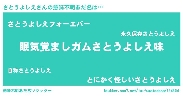 | 欧米人風あだ名 | 『ダニエルさとうよしえ』 |
