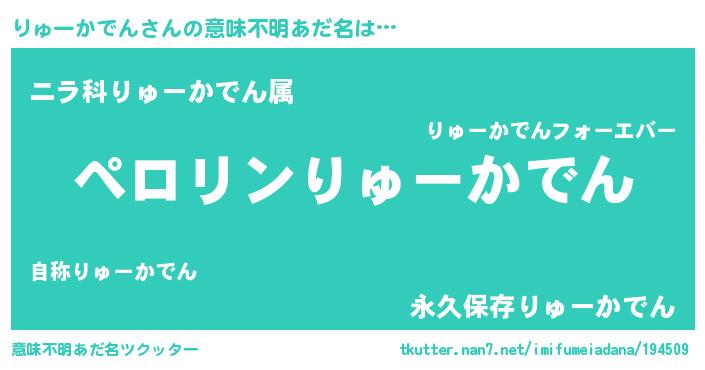 | ヘコむあだ名 | 『りゅにゅー』『りゅーかでん(笑)』 |