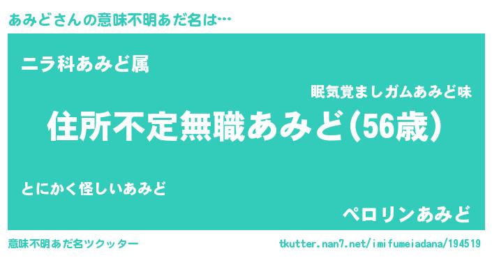 | 男性向けラノベタイトル風あだ名 | 『魔弾の王とあみど』『あみどの憂鬱』 |