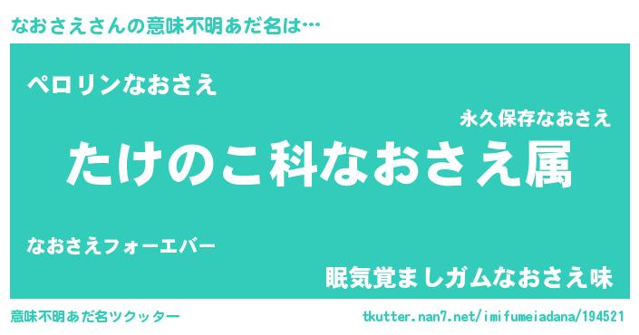 | 男性向けラノベタイトル風あだ名 | 『転生したらなおさえだった件』 |