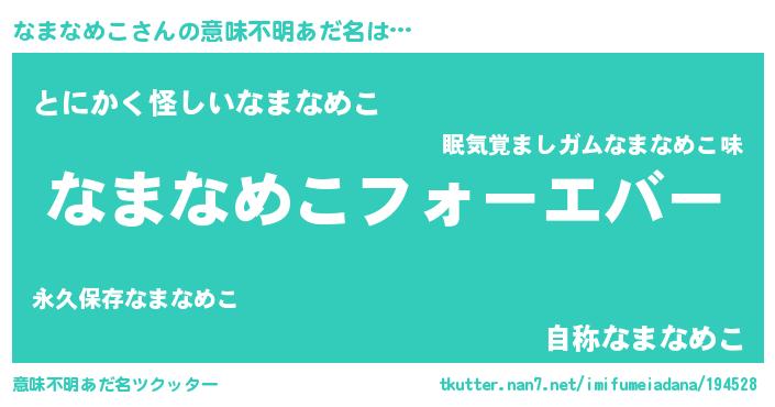 | ヒーロー風カッコイイあだ名 | 『ウルトラなまなめこマン』 |