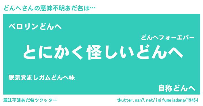 | 女子向けラノベタイトル風あだ名 | 『首の姫と首なしどんへ』『闇のどんへ』 |