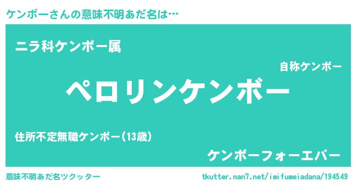 | 男性向けラノベタイトル風あだ名 | 『ケンボーの憂鬱』 |