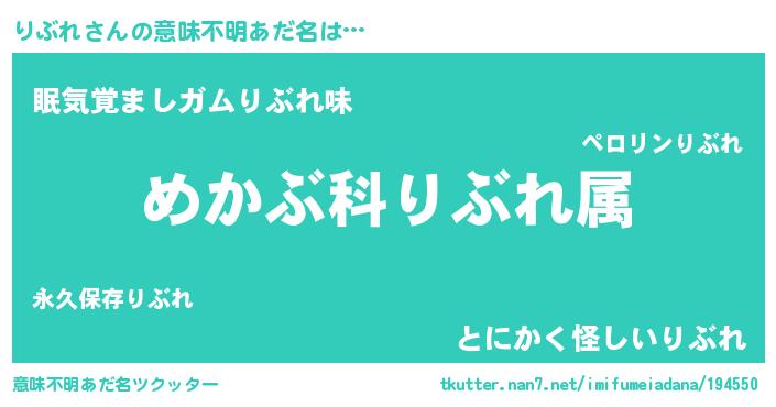 | 男性向けラノベタイトル風あだ名 | 『リブレスレイヤー』『りぶれの憂鬱』 |