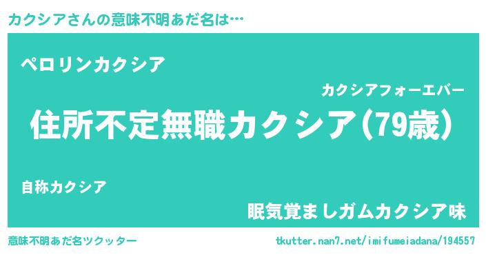 | 胡散臭い通販商品みたいなあだ名 | 『あなたにだけ特別に提供する世界で10本だけ現存している希少なブランデー…その名も「カクシア」』 |