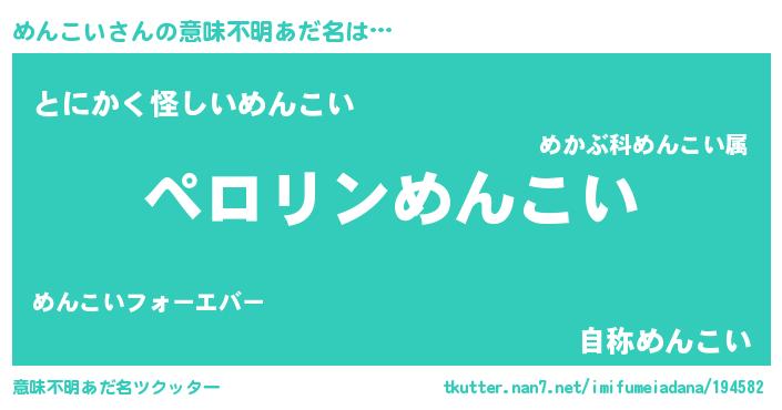 | 男性向けラノベタイトル風あだ名 | 『めんこいの憂鬱』『メンコイスレイヤー』 |