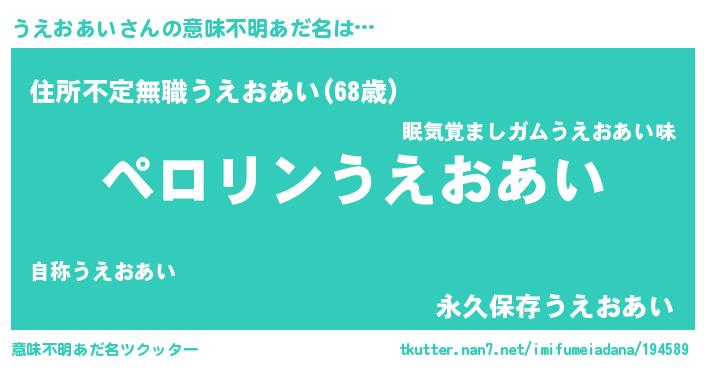 | 男性向けラノベタイトル風あだ名 | 『ウエオアイアートオンライン』 |