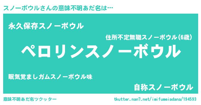 | 男性向けラノベタイトル風あだ名 | 『スノーボウルの憂鬱』 |