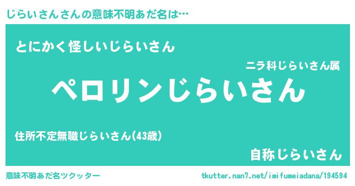 | 欧米人風あだ名 | 『じらいさん・ステッグマイヤー』 |