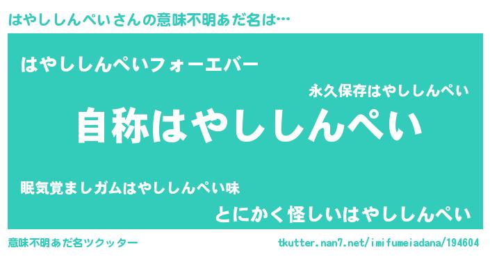 | ヒーロー風カッコイイあだ名 | 『最強戦士ハヤシシンペイ』 |
