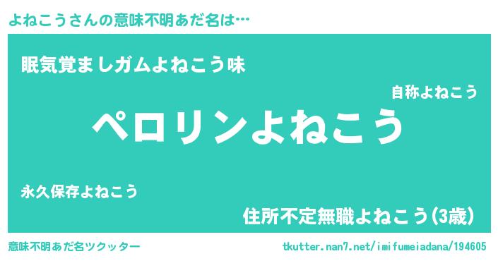 | 欧米人風あだ名 | 『マイケルよねこう』『ダニエルよねこう』 |