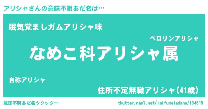 | 肩書あだ名 | 『アリシャ中将』『アリシャ助手』 |