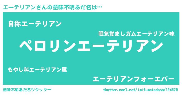 | 男性向けラノベタイトル風あだ名 | 『エーテリアンの憂鬱』 |