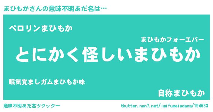 | 恥ずかしいあだ名 | 『マヒリンリン』『プリティーまひもか』 |