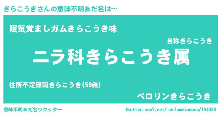 | 欧米人風あだ名 | 『トリンドルきらこうき』 |