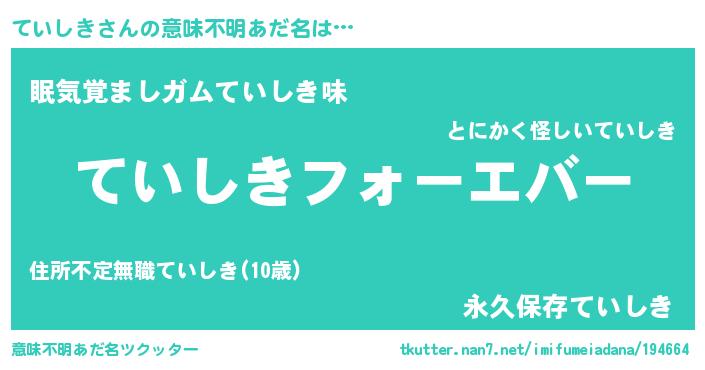 | 女子向けラノベタイトル風あだ名 | 『ていしきの雑貨屋さん』 |