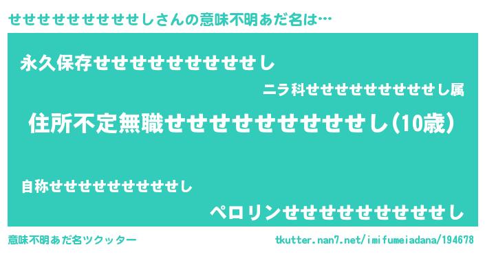 | 伝説のあだ名 | 『古より伝わる吟遊詩人せせせせせせせせせし』 |